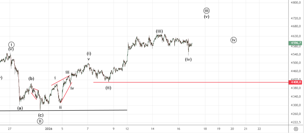Недавнее снижение скорее всего было коррекций , сходили в непроторгованный диапазон на 4540 . Ожидается продолжение роста , нужно учитывать , что подходим к вершине среднесрочного цикла. Важный уровень — 4500 .