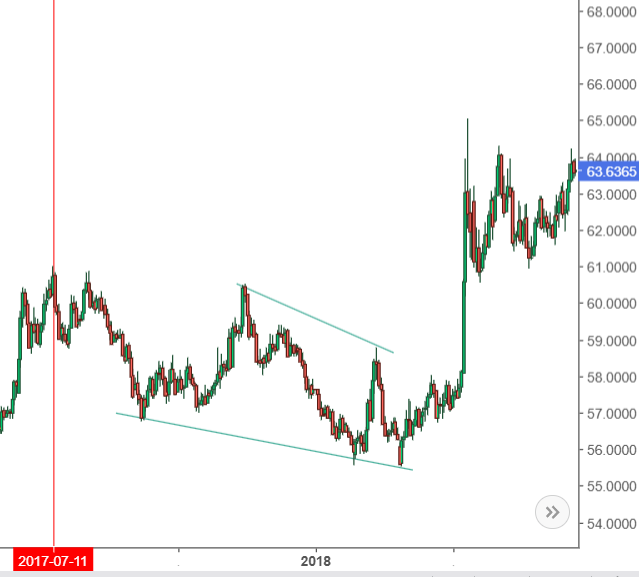 Например , похожая ситуация была в начале 2018-го . С середины июля 2017-го формировался клин , после его завершения произошло быстрое движение вверх.
